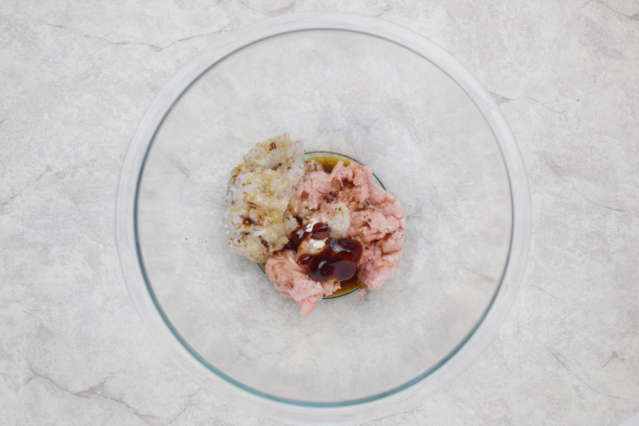Soak the shiitake mushrooms for 15 minutes or until soft. After, mince the shiitake mushrooms. Next, take the one slice of ginger (optional) and mince it. This step is optional. Please skip this step if you do not want to add ginger. Chop the pork and shrimp in very small pieces or ground the pork and shrimp in a food processor. If you use ground pork, you can skip this step.